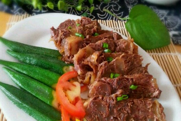 4. 牛肉鹵熟后涼了切小塊用秋葵盤面點綴。