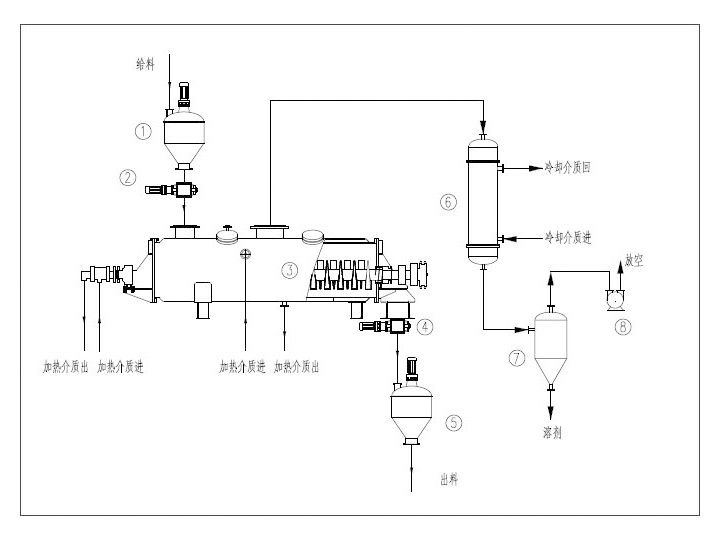 槳葉干燥機(jī)由互相嚙合的二到四根槳葉軸、帶有夾套的W形殼體、機(jī)座以及傳動(dòng)部分組成,物料的整個(gè)干燥過程在封閉狀態(tài)下進(jìn)行,有機(jī)揮發(fā)氣體及異味氣體在密閉氛圍下送至尾氣處理裝置,避免環(huán)境污染。