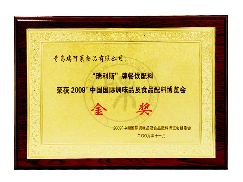 “瑞利斯”牌餐飲配料榮獲2009中國國際調(diào)味品及食品配料博覽會金獎