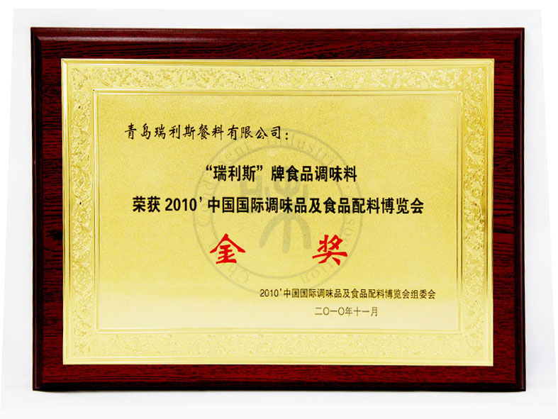 “瑞利斯”牌食品調(diào)味料榮獲2010中國國際調(diào)味品及食品配料博覽會金獎