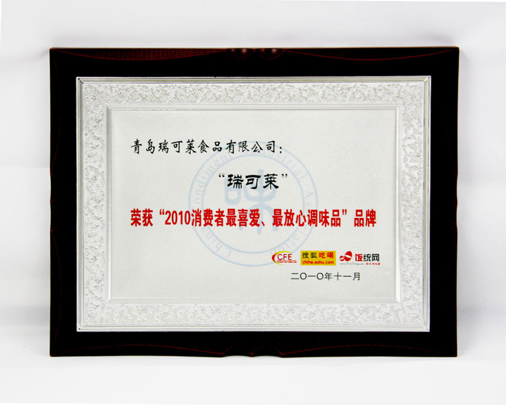 “瑞可萊”牌咸味香精榮獲2010中國國際調(diào)味品及食品配料博覽會金獎