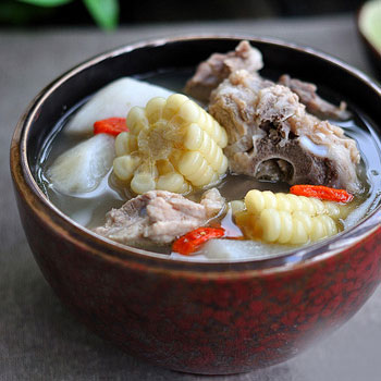 調(diào)料:山藥適量、嫩玉米適量、骨髓浸膏